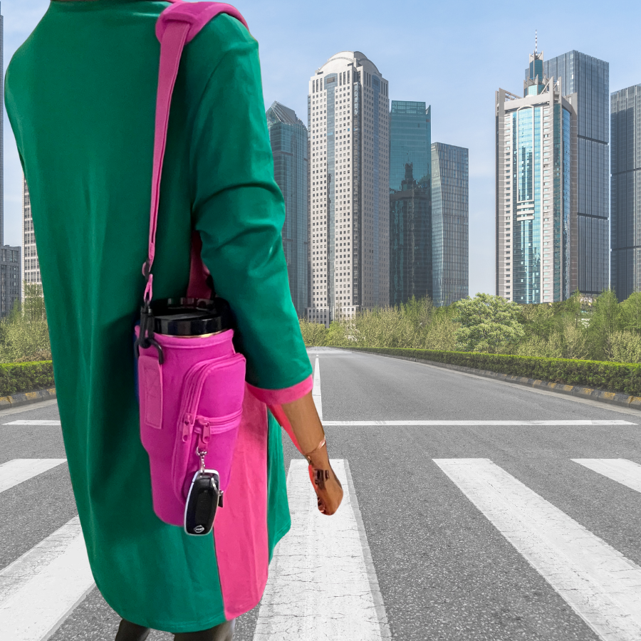 Stay hydrated in style with our Pink Crossbody Water Bottle Carrier.