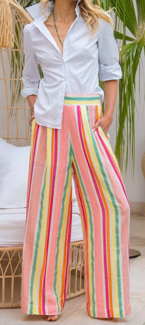 The sequin pants with Its smocked back and side pockets add a practical touch to these loose pants.