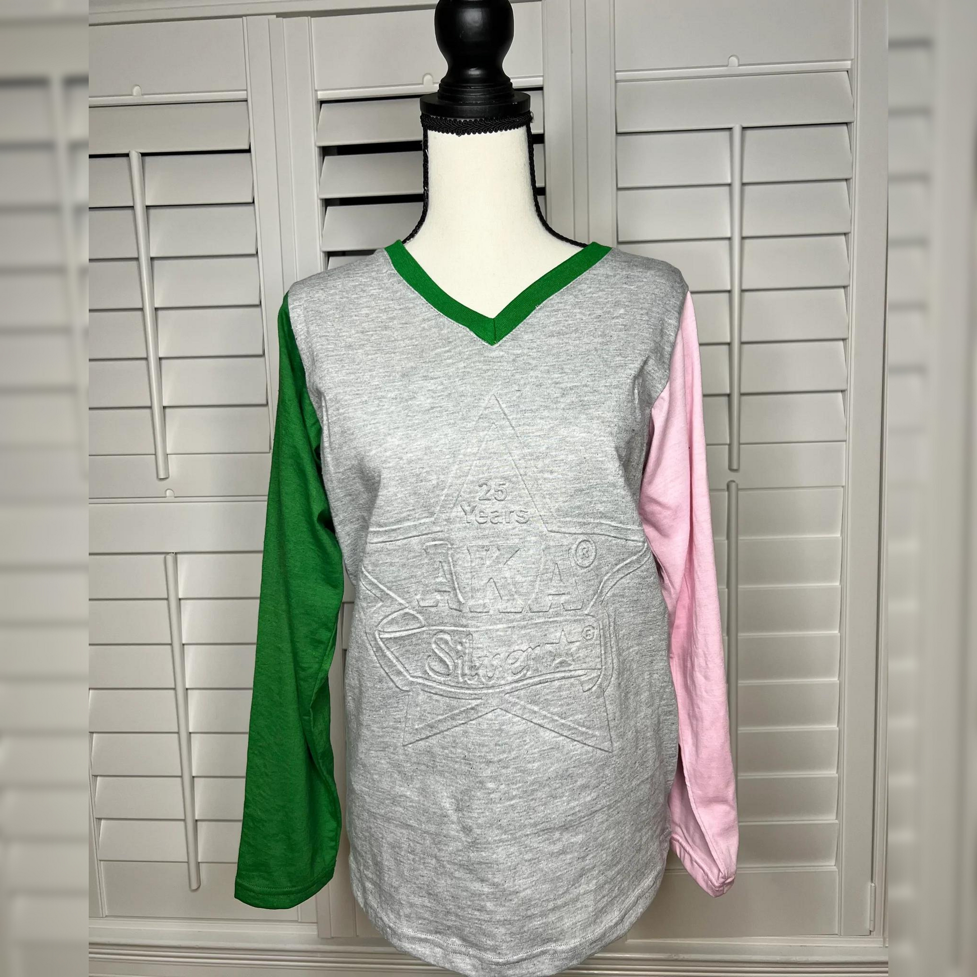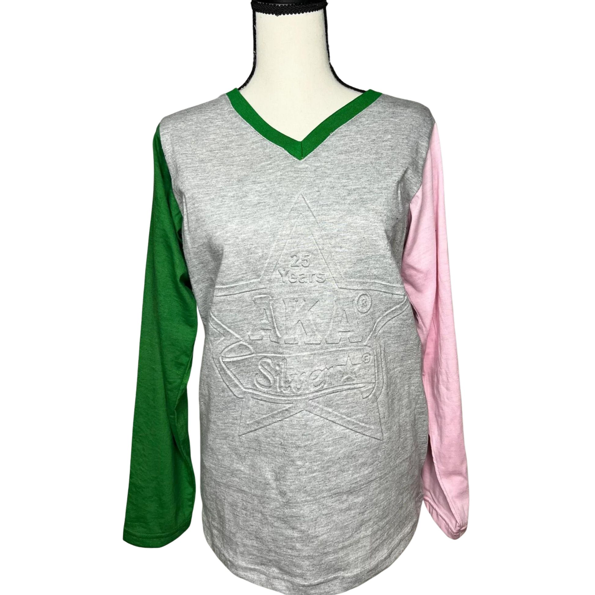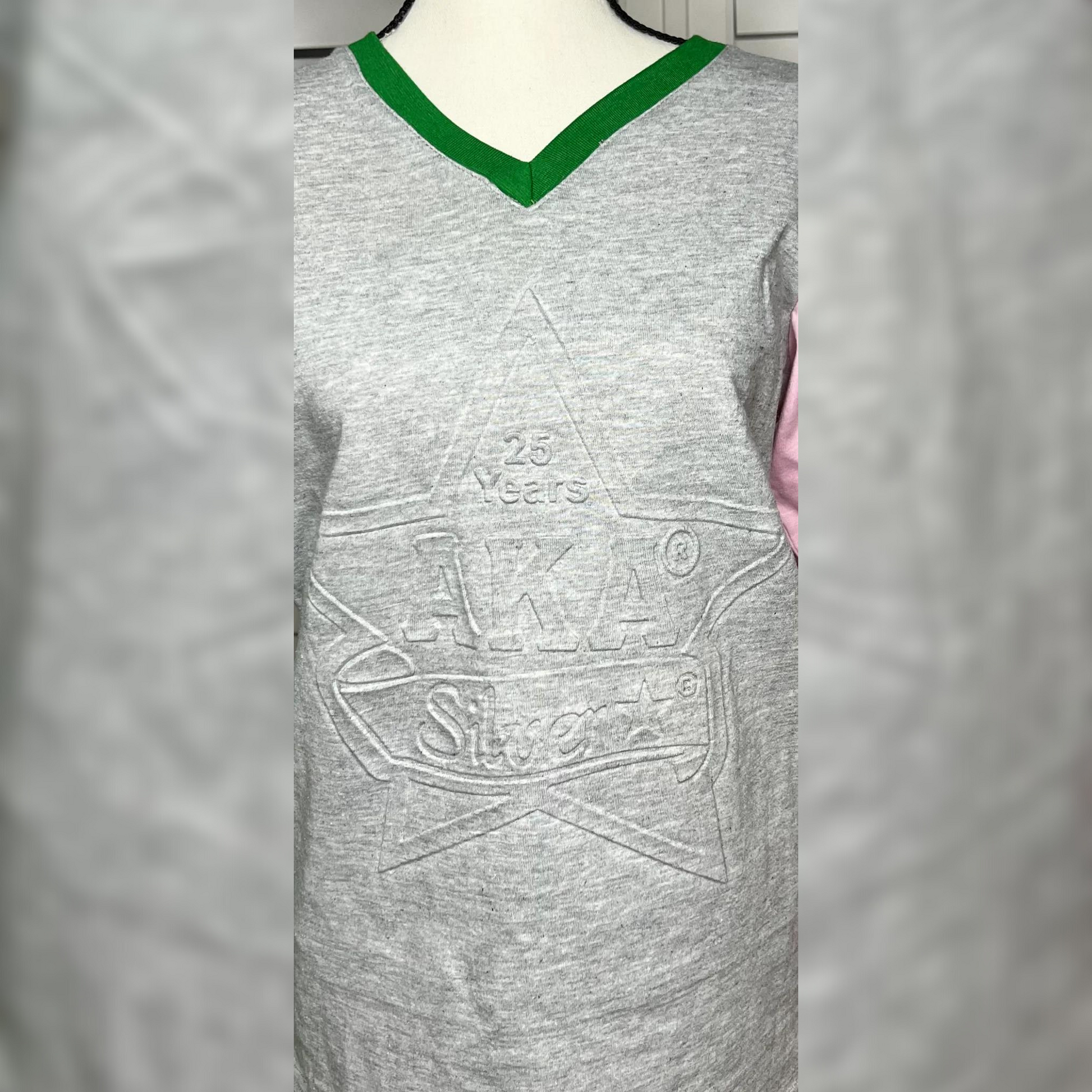 Wear your colors and sport your milestone of 'SILVER STAR'. This is an elegant, comfortable 100% cotton long sleeve shirt. It's V-neck sexy design and the embossed silver star layout looks great on this shirt but subtle enough for your to blend in to the crowd!